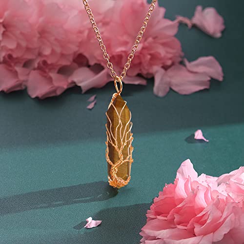 VIBILIA - سلسلة علاجية مزينة بحجر كريم طبيعي سداسي الشكل ملفوف بسلك معدني على شكل شجرة الحياة للرجال والنساء