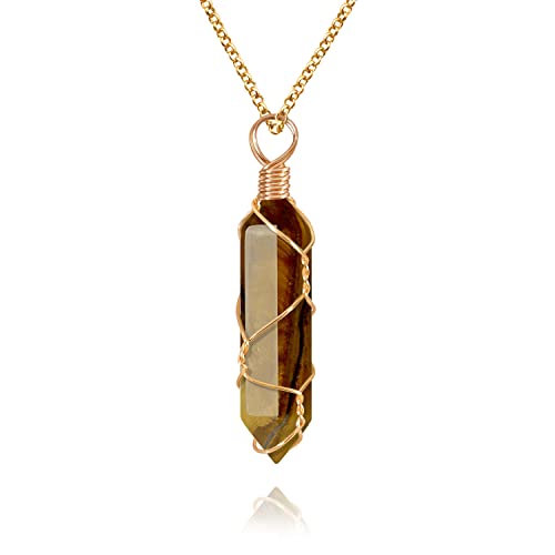 VIBILIA - VIBILIA Healing Crystal Necklace Wire Wrapped Natural Tigerite Stone Point Pendant Necklace Hexagonal Reiki Spiritual Quartz Gemstone Stone Jewelry for Women Men, Gemstone