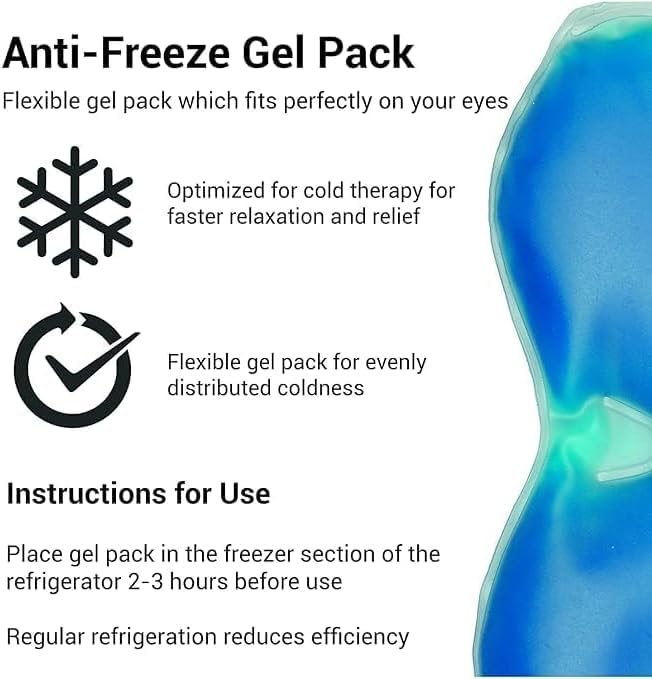 - Eye gel mask: handmade gel and micro-massage beads promote eye circulation and relieve eye muscle fatigue; ideal for puffy eyes and dark circles.