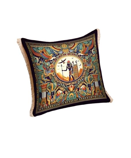 - Intricate Modern Egyptian Design: Features a highly detailed, symmetrical, and vibrant composition reminiscent of a mandala, showcasing key Egyptian symbols like winged deities, columns, and an enthroned/standing figure.Pillow Cover only without pillow