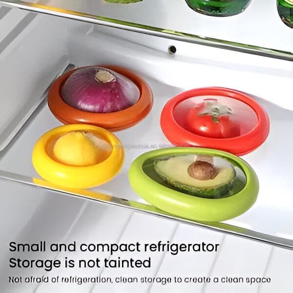 Generic - Vibrant Silicone Food Boxes - Multi-purpose, eco-friendly 4-piece set ideal for organizing and preserving produce including onions, tomatoes, lemons, and avocados efficiently