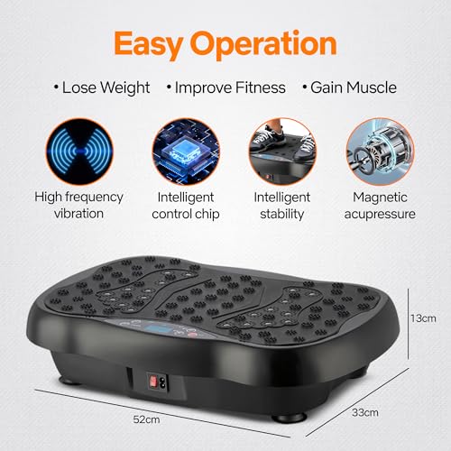 - Compact & Home Gym Ready: Designed for any space, this sleek 52×33×13cm vibration plate supports up to 150kg, making it the perfect addition to your home gym or personal fitness studio.