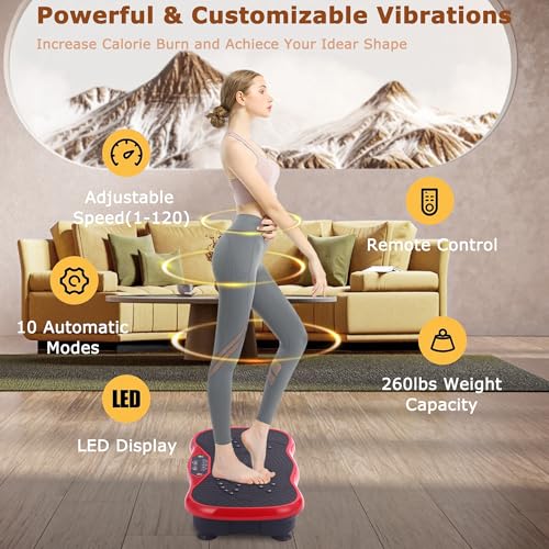 - 【Sturdy & User-Friendly】- Enjoy hands-free adjustments with the included remote control. The anti-slip surface & ultra-quiet motor of the vibration platform machines support users up to 260lbs, making it safe for all ages. Compact design fits any home/office space!