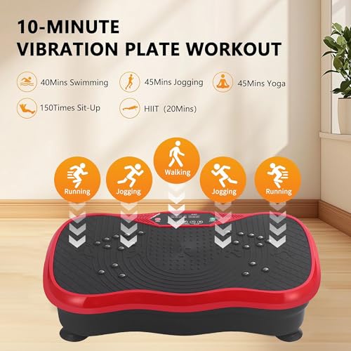 - 【10 Modes & 120 Speeds】- Maximize results with 10 preset programs & 120 adjustable speeds—perfect for beginners to advanced users. Whether you want gentle relaxation or intense fat-burning, this power plate vibration platform adapts to your fitness goals!