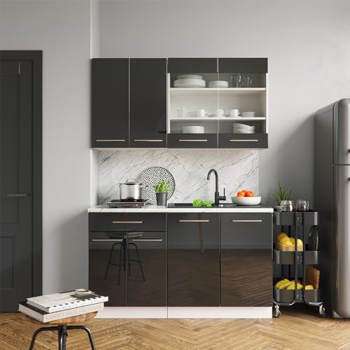 Vicco - Vicco Fame-Line Single Built-In Kitchen Unit 140 cm High-Gloss Anthracite