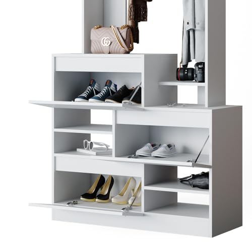 - This wardrobe impresses with its many compartments and shelves for storing all your shoes and bags.