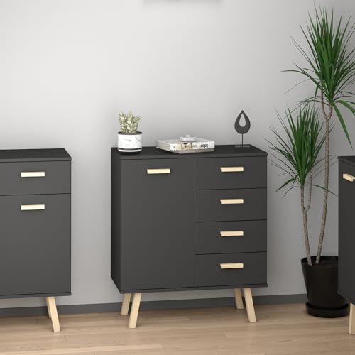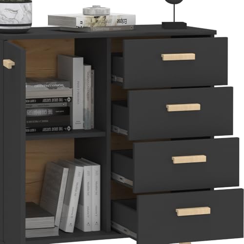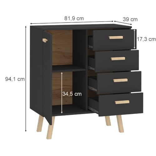 Vicco - Vicco Hans Sideboard, Anthracite/Wood, 81.9 x 94.1 cm with Drawers