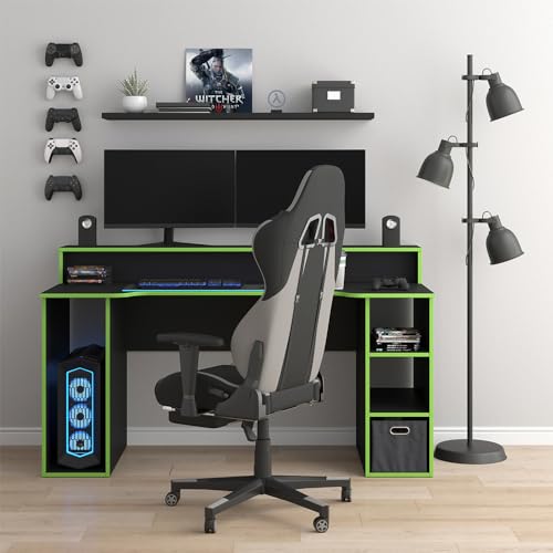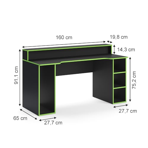 - الأبعاد: يبلغ عرض مكتب الألعاب 160 سم، وارتفاعه 91.1 سم وعمقه 65 سم. سوف تجد جميع المقاسات التفصيلية موضحة في الصور.