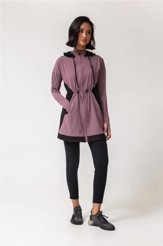 Generic - طقم رياضي نسائي من Vicino مع سترة بجيوب وسحاب كامل، فتحات للإبهام، وحزام خصر عالي للتمارين الرياضية ،باللون الأرجوانى
