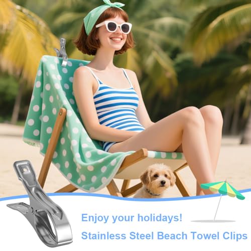 Vicloon - Vicloon 6 Pcs Stainless Steel Beach Towel Clips, Wind Resistant, for Heavy Clothing and Washing, Silver
