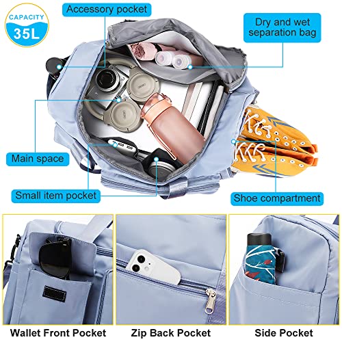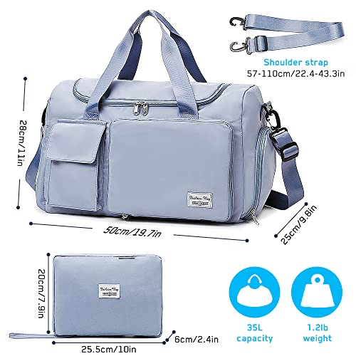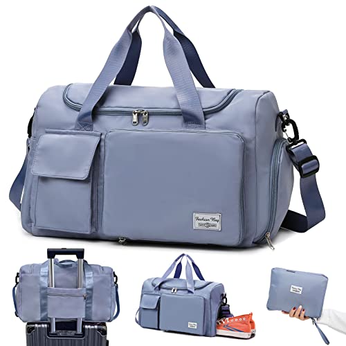 Victop - Sports Gym Bag with Wet Pocket & Shoe Compartment - Waterproof Weekend Travel Duffle for Women, Large Holdall Shoulder Bag for Swim, Sports, Overnight - A-Blue, Casual