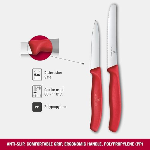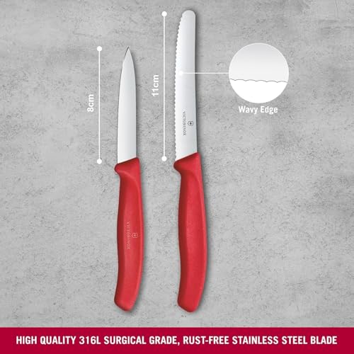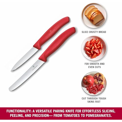 Victorinox - Victorinox Swiss Classic Paring Knife Set, 2-Piece, Straight Blade and Serrated Cut, Stainless Steel, Swiss Made, Red