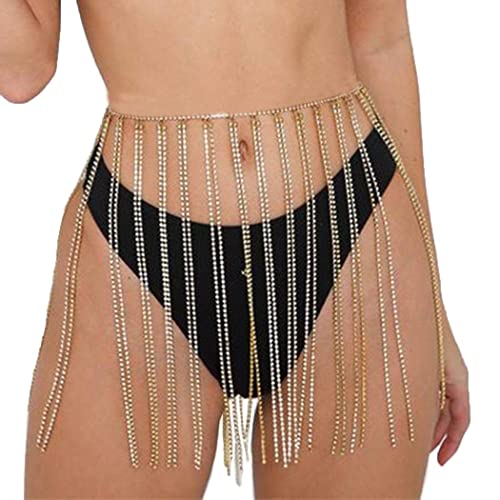 Victray - Tassel Belly Waist Chain Beach Crystal Body Chains Fashion Waist Jewelry Nightclub Body Accessory for Women and Girls (Gold)