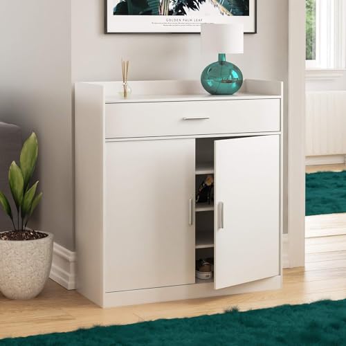 Generic - Vida Designs Dalby Modern Shoe Cabinet 2 Door 1 Drawer Hallway Closet Storage Organizer Shoe Rack Shoe Rack Wood Side Unit White