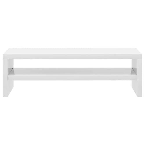 vidaXL - حامل شاشة مع رف تخزين لتخزين الأقلام والكمبيوتر، ترابيزة تلفزيون عالية اللمعان من الخشب المشكل هندسيًا من فيداكسل، أبيض