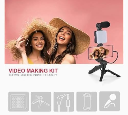 - ✅ All-in-One Video Kit: Includes a high-quality microphone, LED49R light, a stable tripod with a one-hand grip, and a phone holder for the perfect setup.