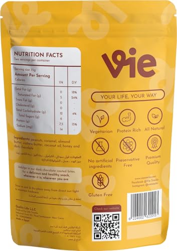 Vie - Vie Gluten Free Peanut Caramel Dark Chocolate Coated Bites 70 g