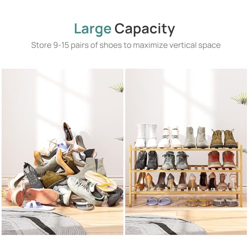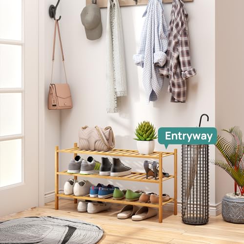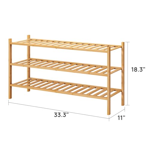 viewcare - 3-Tier Long Shoe Rack, Bamboo Wood Shoe Rack for Closet, Entryway & Hallway, Stackable | Beautiful | Functional | Sturdy