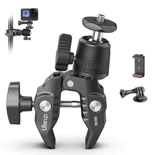 VIJIM - مشبك حامل كاميرا سوبر اولانزي برأس دوار بزاوية 360 درجة ومسمار 1/4 مضاد للارتخاء لتثبيت شاشات LCD وكاميرات الأكشن وSLR وجوبرو على الدراجات الهوائية والنارية من فيجيم