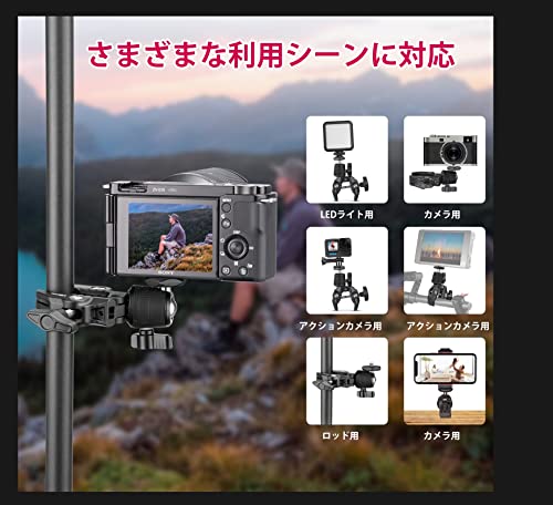 - 【آمن بأمان】فتحة المشبك من 0.59 انش (15 ملم) إلى 2.3 انش (60 ملم)، ويمكن تثبيتها في أي مكان مثل أسطح الطاولات والقضبان والحوامل الثلاثية وحوامل الكاميرا والدراجات النارية وما إلى ذلك