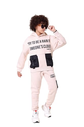 VIKIN'G.EG - VIKIN'G.EG Boys Winter 2 Piece Hoodie and Sweatpants with Side Pockets and Text Print (Off White, 8-10 Years) FK301 8-10-OF