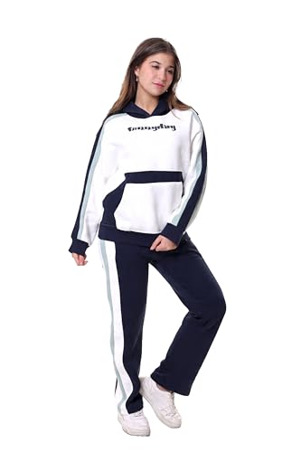 VIKIN'G.EG - VIKIN'G.EG Girls Winter Sports 2 Piece Hoodie and Pants Warm Cotton Fabric Sweatsuit (White & Dark Blue, 16-18 Years) FK400 16-18-WB