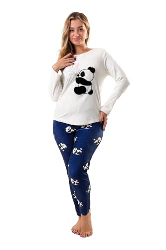 VIKIN'G.EG - VIKIN'G.EG Women's Winter Pajamas 2 Piece Panda Cotton Soft Sleepwear Home Comfort Pajamas X-Large White and Dark Bluem 0001-xl
