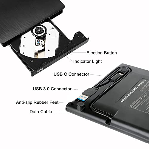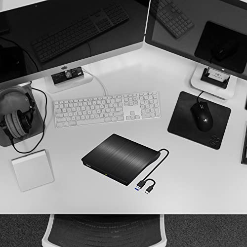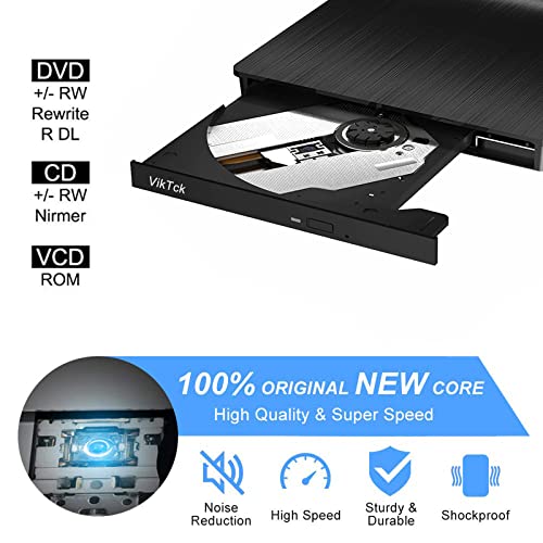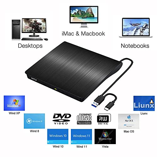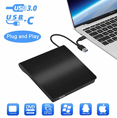 VikTck - محرك أقراص DVD خارجي من النوع سي C USB 3.0 CD DVD، محرك اقراص ضوئي للاب توب وجهاز الكمبيوتر المكتبي وماك باك برو اير لويندوز 11/10/8/7 Linux Mac OS من فيك تيك