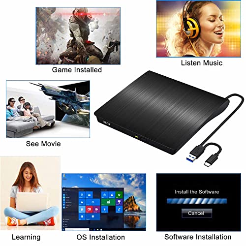 - سرعة عالية للقراءة والكتابة: يوفر القرص الخارجي من النوع C وUSB 3.0 CD/DVD سرعة قراءة 8 أضعاف أقراص دي في دي وأقصى سرعة 24 مرة للكتابة/قراءة أقراص CD. هذا النوع C & USB 3.0 قرص CD/DVD سوف يوفر لك أقصى سرعة نقل للبيانات 5 جيجابت في الثانية، وتشغيل أفلام الموسيقى تثبيت برنامج أو نظام، وأقراص حرق دون تأخر أو تشويش.