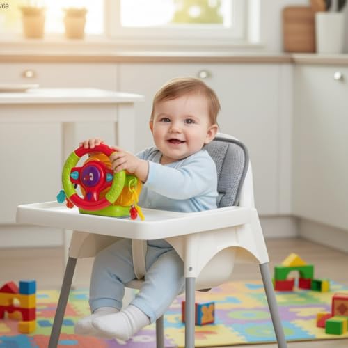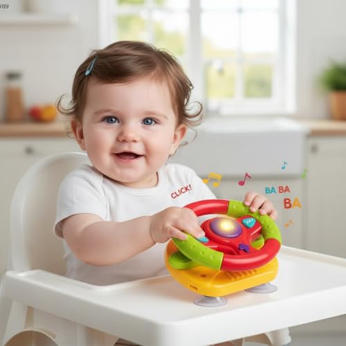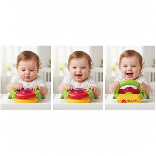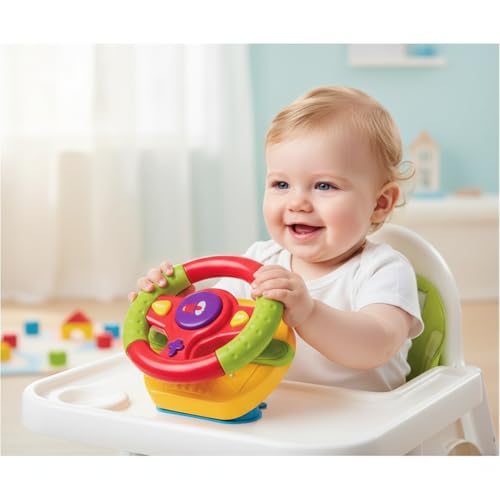 - ROTATING DESIGN: Features a fully rotating steering wheel that enhances children's motor skills and coordination through interactive play.