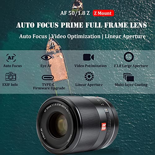 Viltrox - VILTROX 50mm f/1.8 F1.8 STM Auto Focus Prime Full Frame Lens for Nikon Z-Mount Camera Z5 Z50 Z6 Z6 II Z7 Z7 II