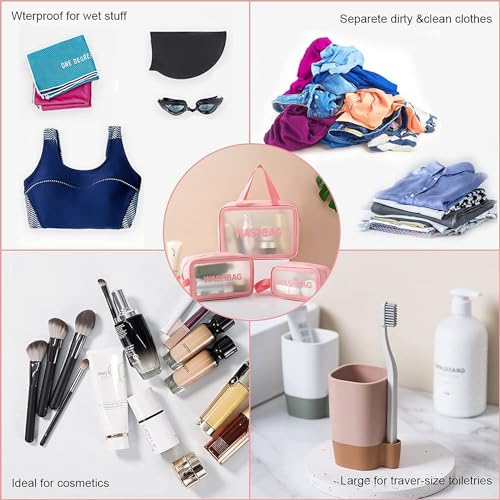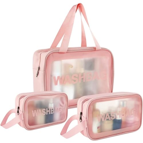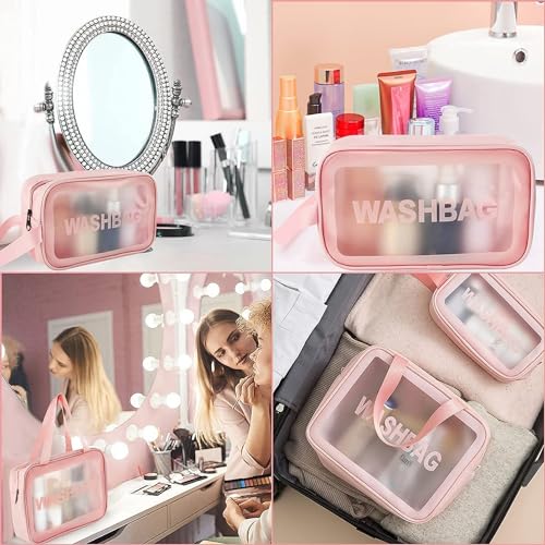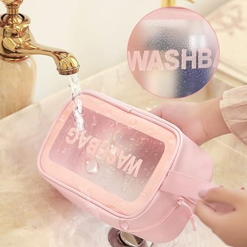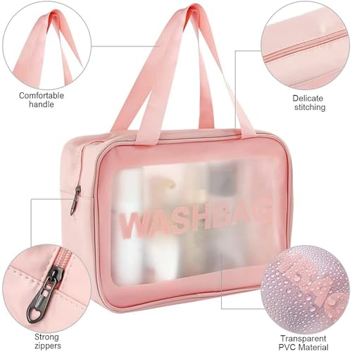 Vinas - Vinas Large Capacity Cosmetic Travel Bag, Women's Makeup Travel Bag Portable Leather Cosmetics Bag, Makeup Storage Bags with Handle and Divider, Wide Opening Cosmetic Bag (WashBag Pink) 12 cms