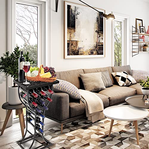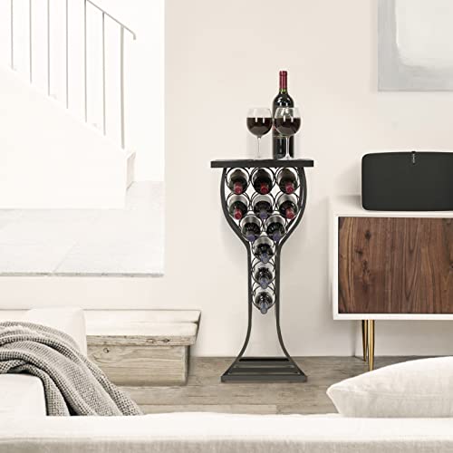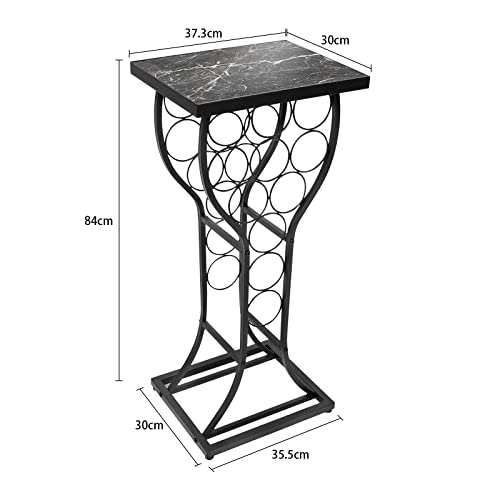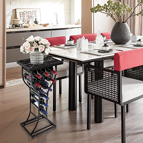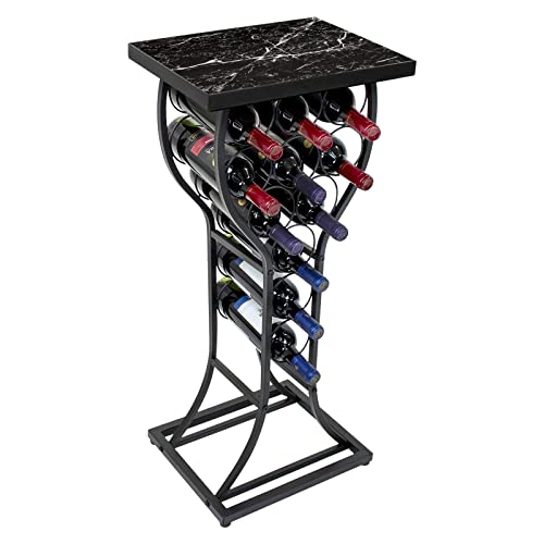 VINEKRAFT - Wine Rack with 11 Bottles Display Holder for Home Bar, Freestanding Wine Storage Organizer Console Table for Limited Spaces, Metal with Faux Marble Finish Table Top