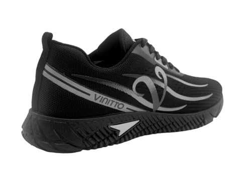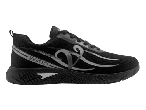 VInITTO - فينيتو حذاء جري رياضي شبكي بلون اسود وتصميم عاكس ونعل مطاطي منسوج (اسود مقاس 45)