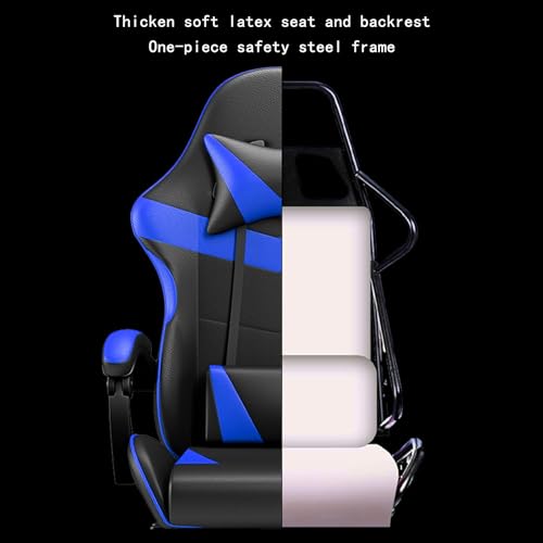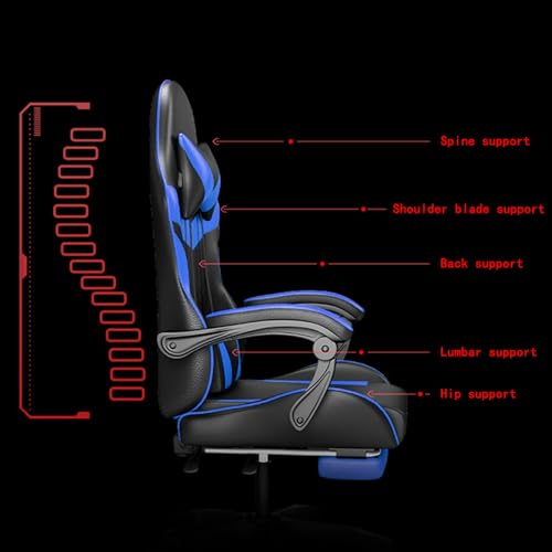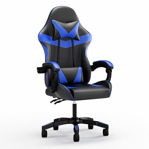 VINNYSEN - فينيسين كرسي العاب مريح بظهر مرتفع، كمبيوتر قابل للامالة وارتفاع للتعديل، للدوران 360 درجة مع دعم للرقبة والفقرات القطنية، مسند ذراع (ازرق)، جلد