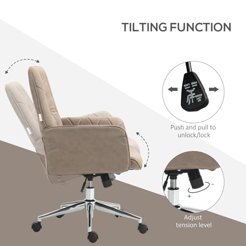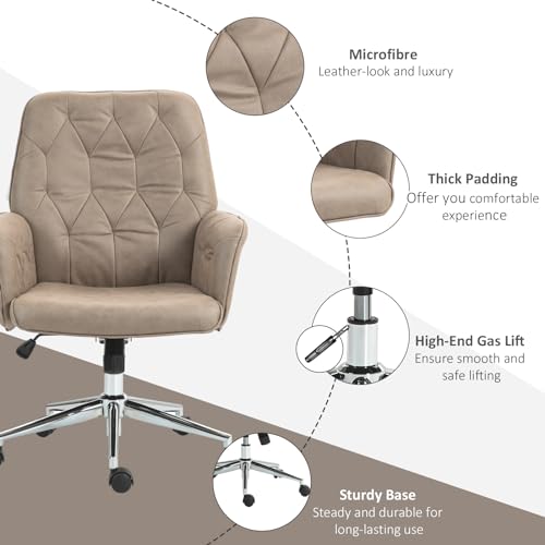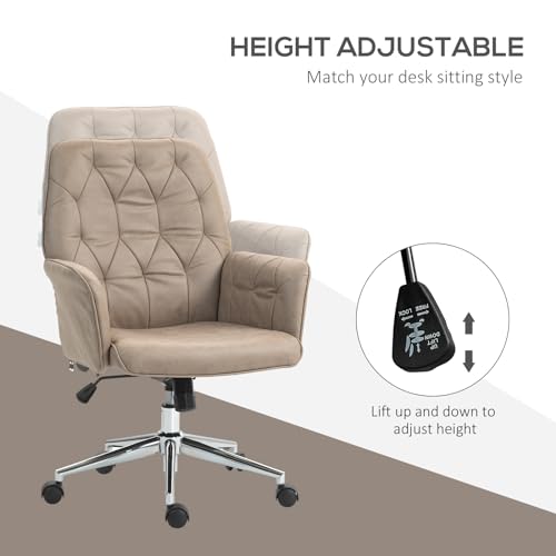 Vinsetto - Vinsetto Office Desk Chair, Microfibre Vanity Chair with Adjustable Height, Armrest, Swivel Chair for Home, Khaki