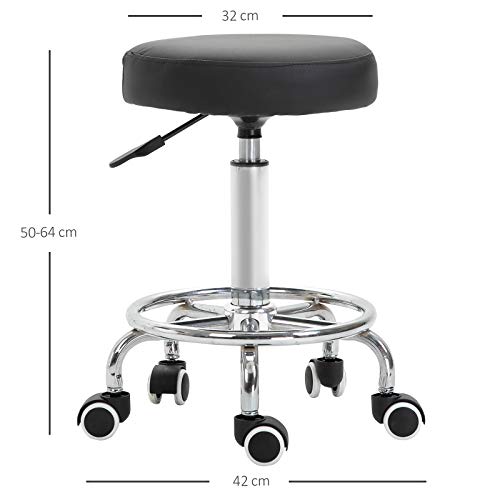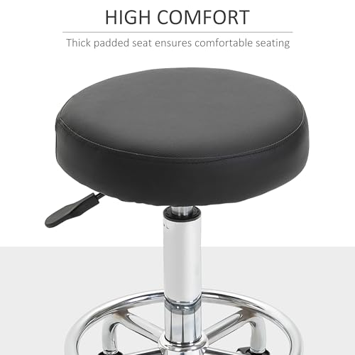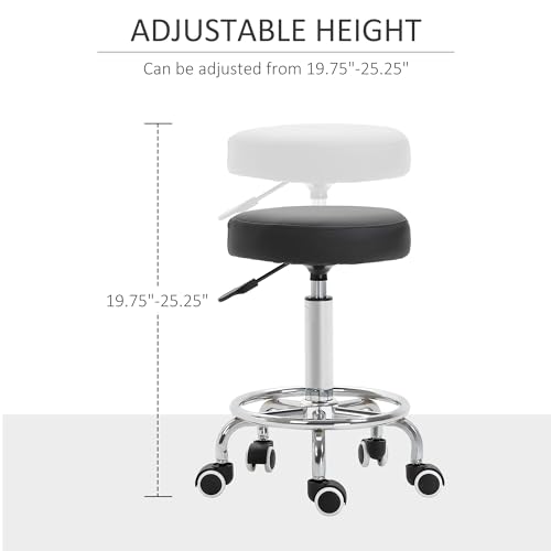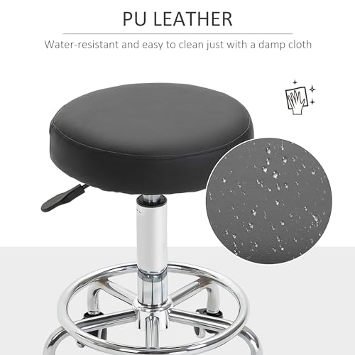 Vinsetto - Vinsetto Round Rolling Stool, PU Leather Height Adjustable Stool Chair with Wheels and Swivel Seat for Salon, Massage, Spa, Home Kitchen, Black