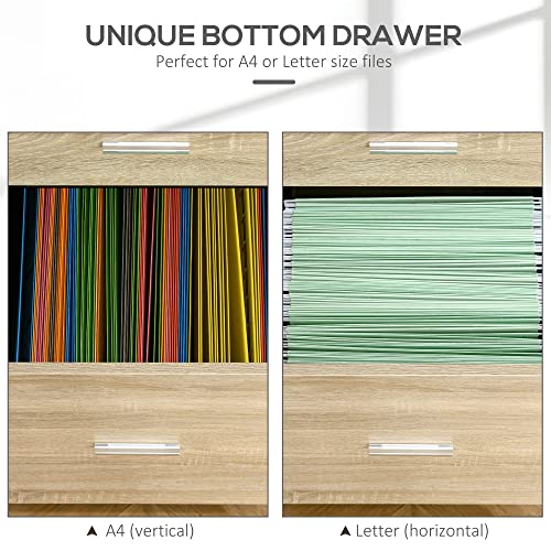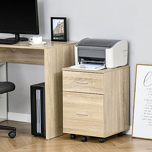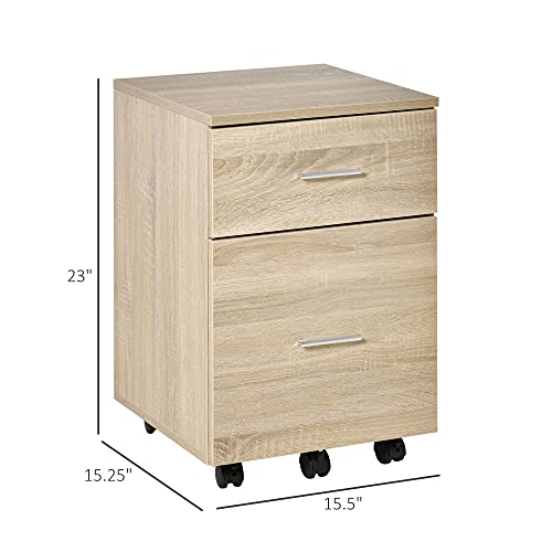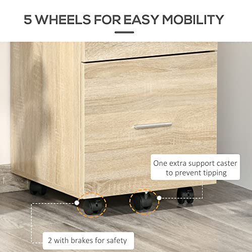 Vinsetto - خزانة ملفات عمودية مع عجلات، خزانة ملفات متحركة بدرجين، للخطابات أو ملفات A4، مكتب منزلي للدراسة من فينسيتو، لون طبيعي