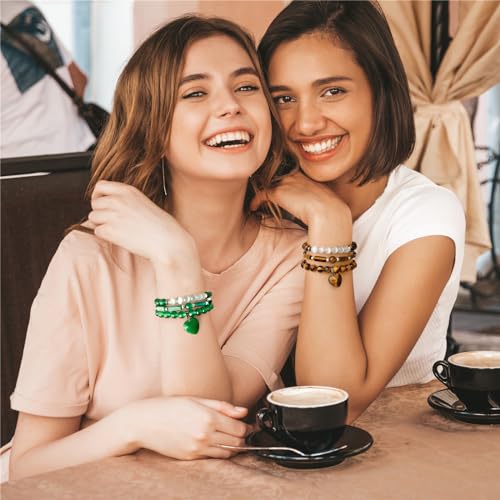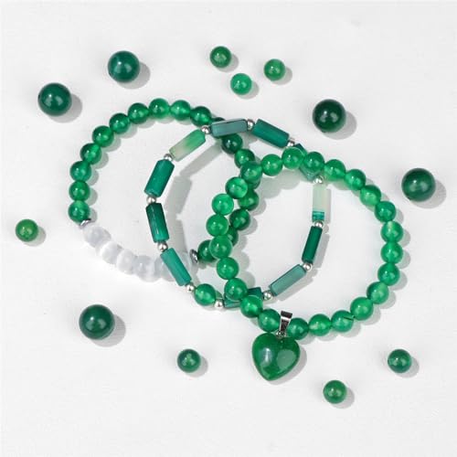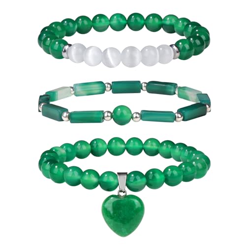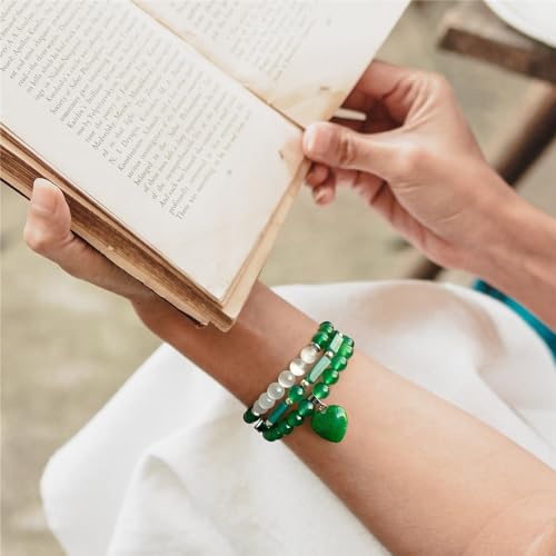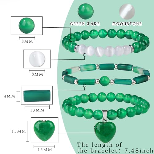 Vinswet - Healing Crystal Beaded Bracelets for Women,Natural Green Jade Moonstone Gemstones Bracelet,Anxiety Stress Relief Heart Charm Bracelet Handmade purple Jewelry Gifts for Women