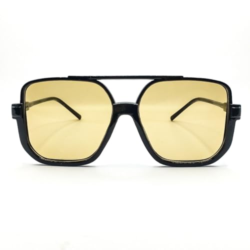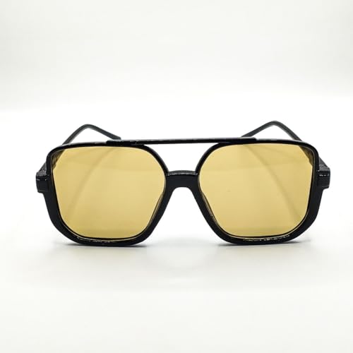 Generic - نظارة شمسية كلاسيكية باللون الاسود وعدسة عسلي مربعة بتصميم كلاسيكي للنساء واقية من الاشعة فوق البنفسيجة UV400