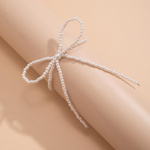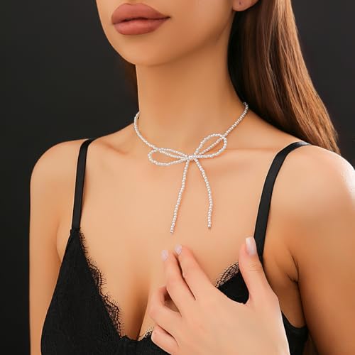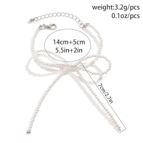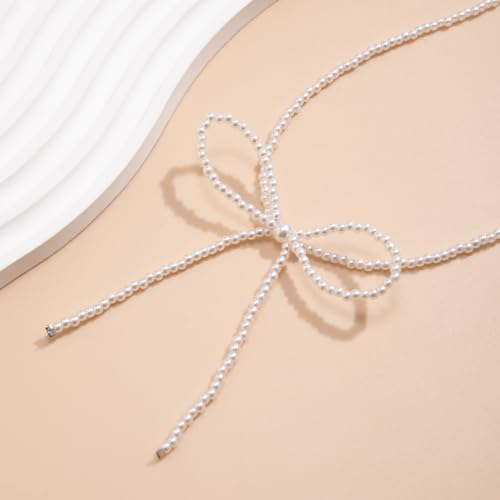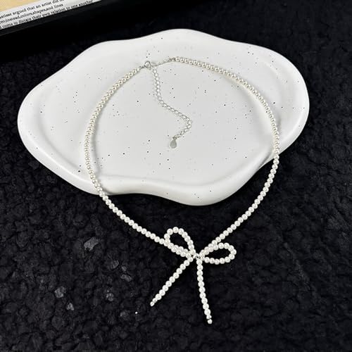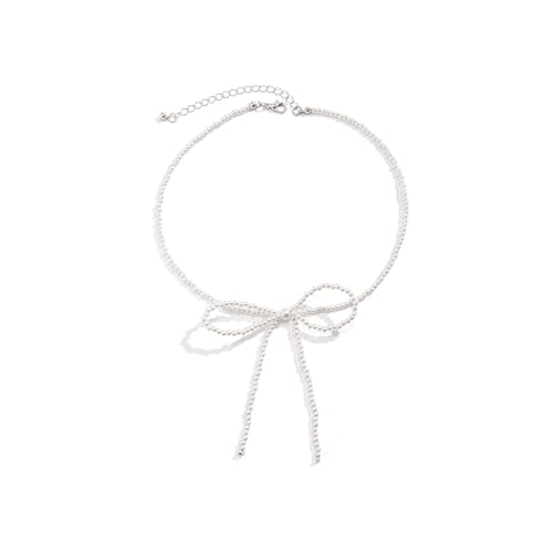 Stringex - Vintage Bow Tie Necklace for Women Teen Girls Boho Elegant 18k Gold Silver Butterfly Pearl Beaded Choker Necklace Trendy Cute Tassel Choker Jewelry