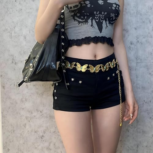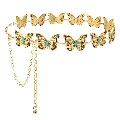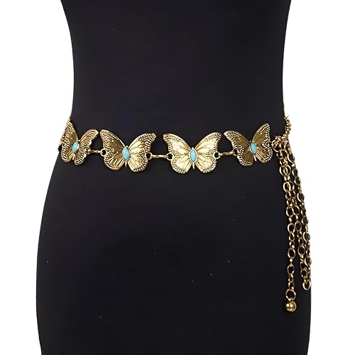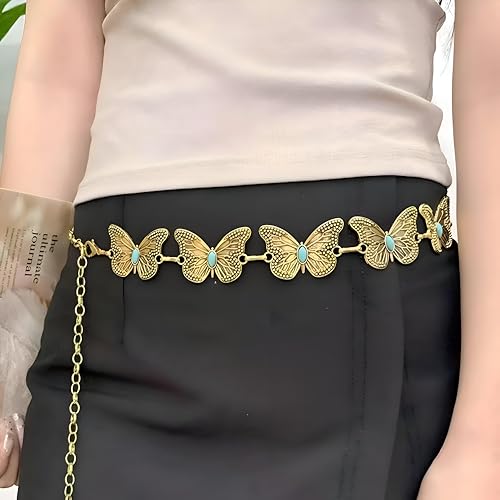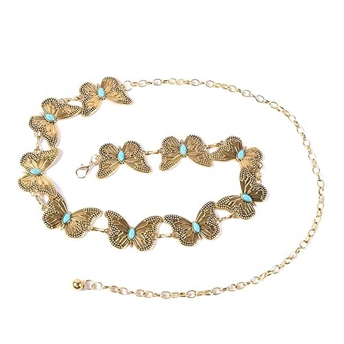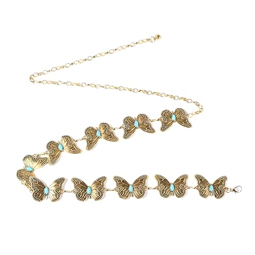 Generic - سلسلة خصر معدنية منحوتة عتيقة - حزام طويل قابل للتعديل لون ذهبي وفضي لفساتين النساء وسلسلة الجسم