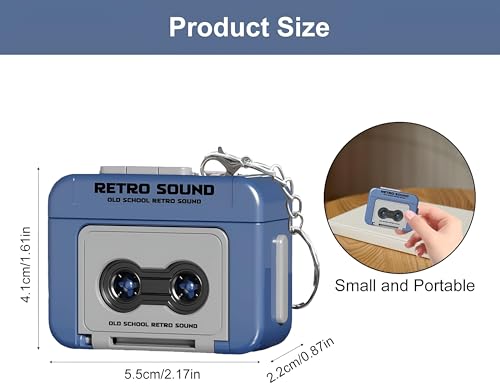 Generic - Vintage Cassette Player - Compact Retro Keychain Device with Blue Housing, Emulating Classic Tape Sound for Collectors and Music Enthusiasts