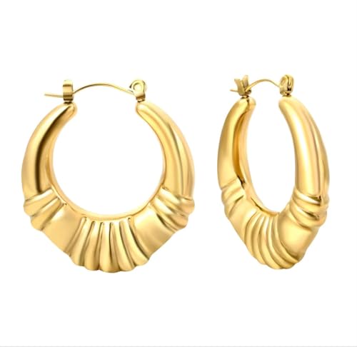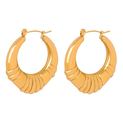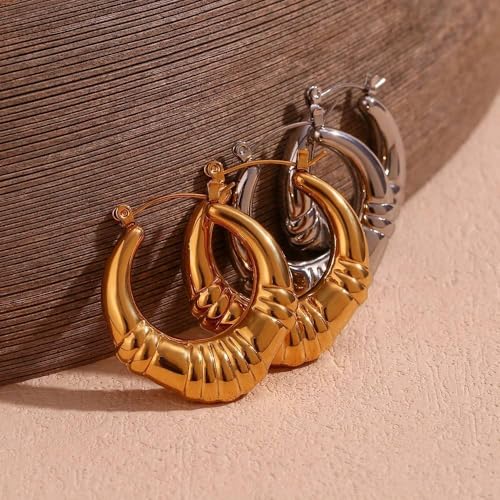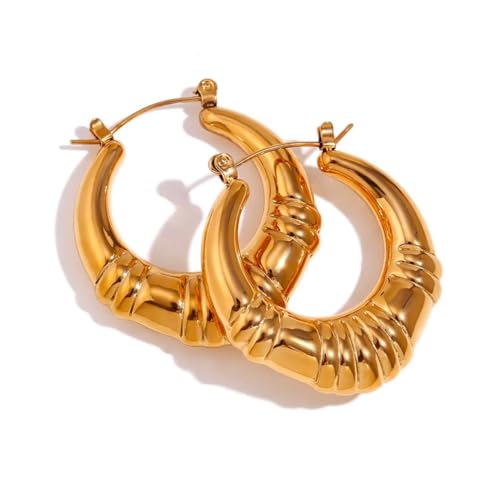 Generic - Vintage Chunky Texture Round Hoop Earrings for Women Steel Golden Aros Trendy Jewelry Birthday Gift