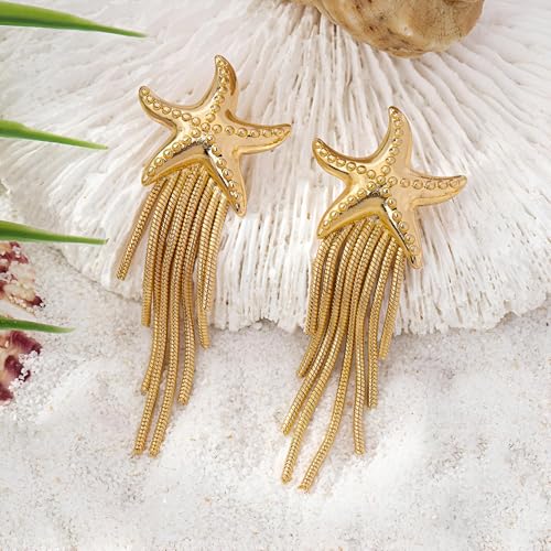 Generic - اقراط فينتاج - اقراط فريدة من نوعها على شكل نجم البحر واقراط متدلية للنساء، مثالية للتصاميم البوهيمية، مثالية لمحبي المحيط والاحتفالات التي تحمل طابع الشاطئ