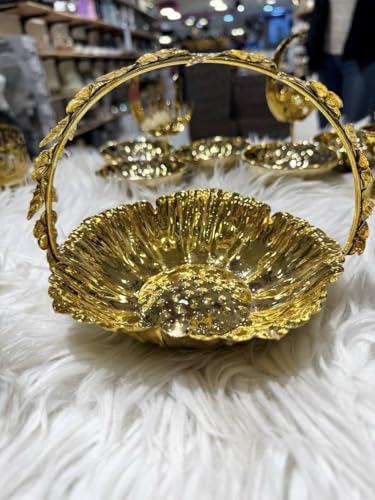Generic - Vintage Gold-Plated Decorative Serving Basket with Floral Handle, Ornate Design, Round Shape