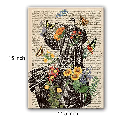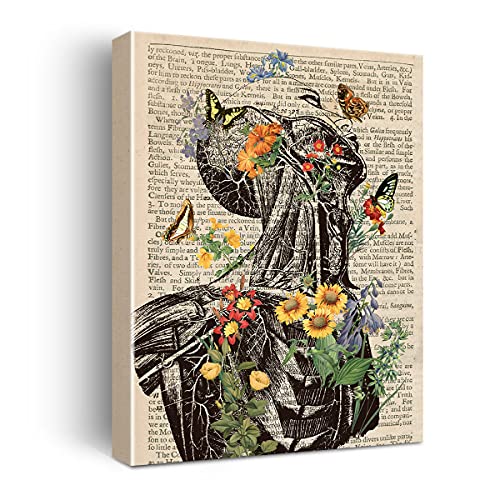 Hijie - Vintage Human Anatomy Poster - Anatomy Canvas Wall Art Anatomical Head and Neck Floral Canvas Print Painting Ready to Hang Gifts for Home/ Office/Medical School Decor - Easel & Hanging Hook 12x15 Inch