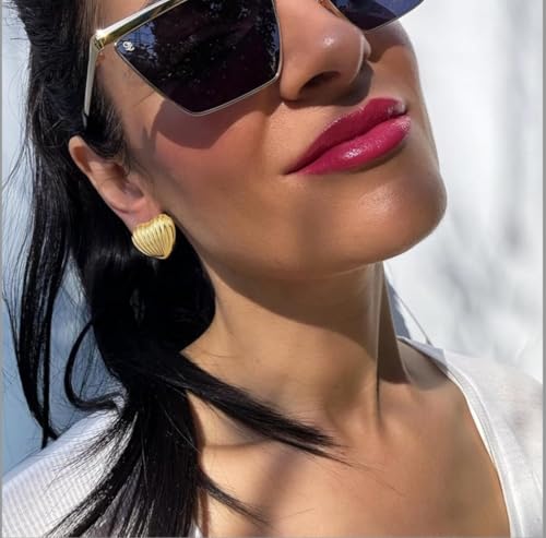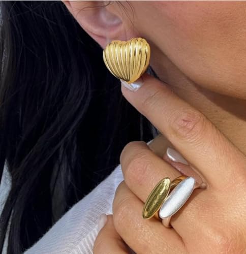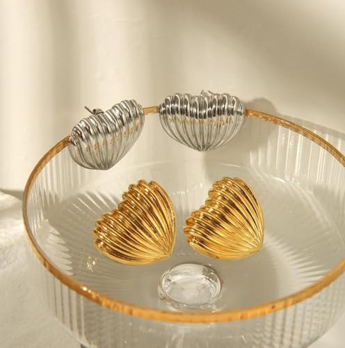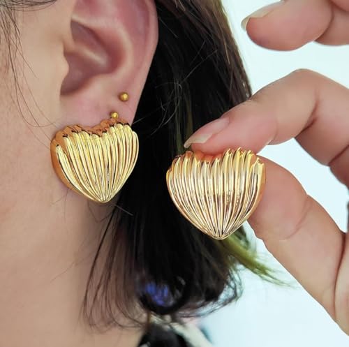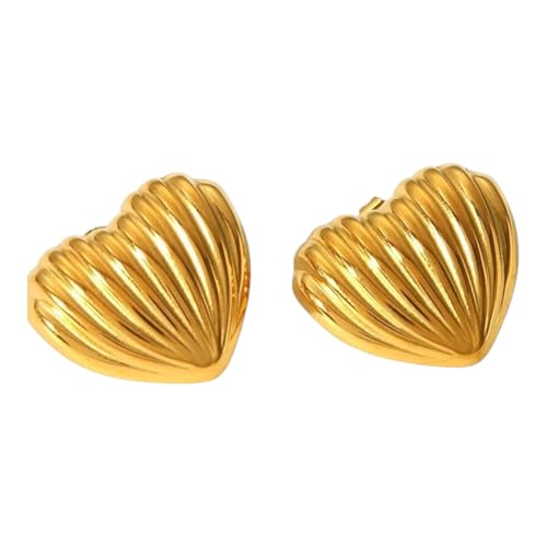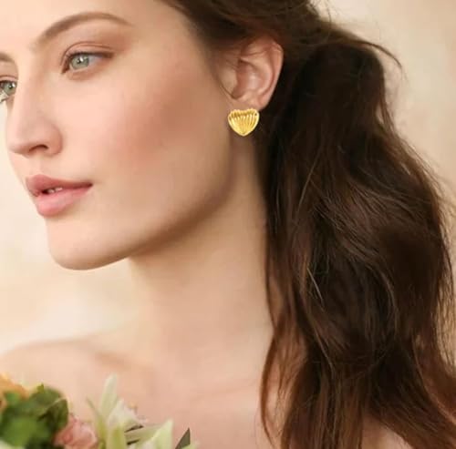 Generic - أقراط مرصعة بأزرار ذهبية مستوحاة من الطراز القديم - تصميم مخطط على شكل قلب، مجوهرات أنيقة ومتينة للنساء، مثالية للاستخدام اليومي للرقي والمناسبات الخاصة