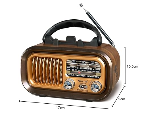 Generic - راديو كلاسيكي كلاسيكي محمول ايه ام/اف ام/اس دبليو مع بطارية قابلة لاعادة الشحن، مشغل MP3 USB، فتحة بطاقة تي اف، هوائي 13.7 انش لتجربة صوت كلاسيكية