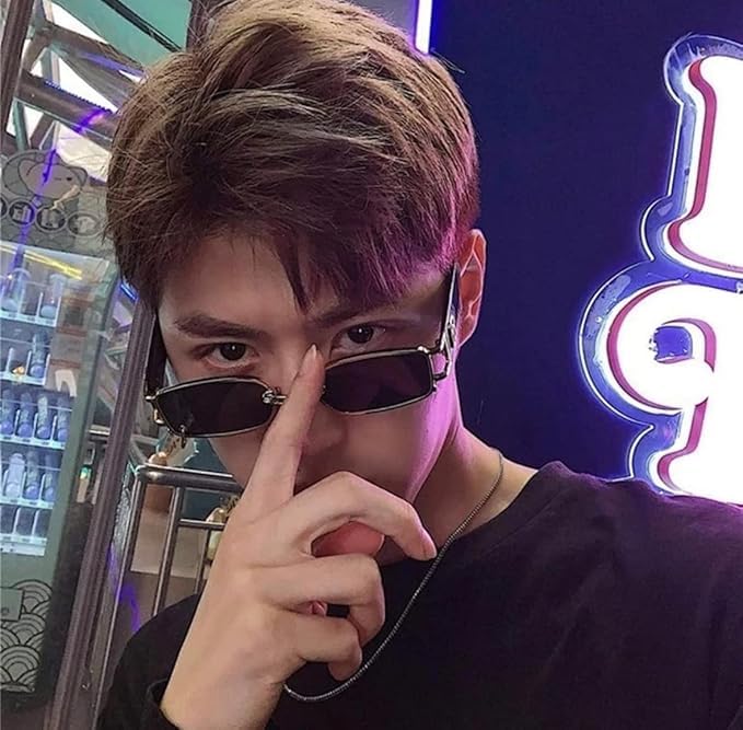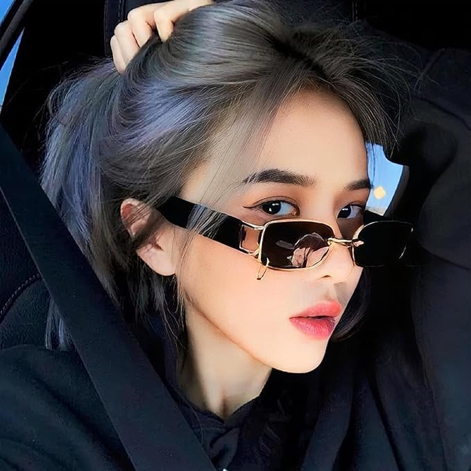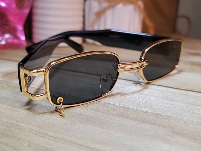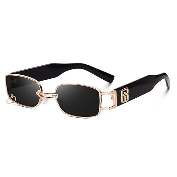 Generic - Vintage Retro Rectangle Sunglasses Metal Frame UV Protection for Men Women Gold Black